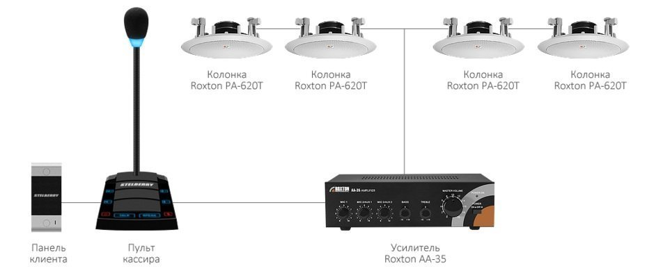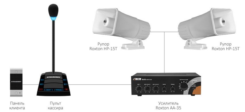 В зависимости от внешнего шума, работник кассы всегда может настроить необходимый уровень громкости, даже во время общения с клиентом.