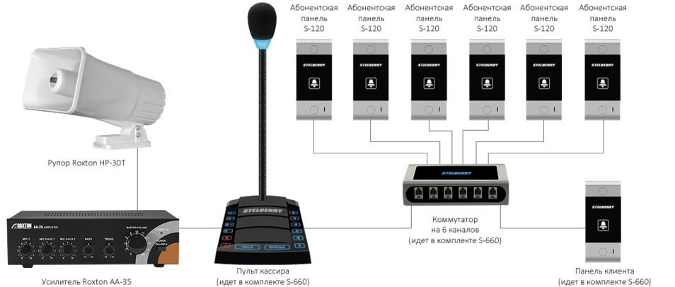 Схема подключения системы диспетчерской связи STELBERRY S-660: