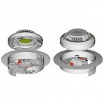 Извещатель имеет возможность установки на подвесной потолок, используя для этого специальную розетку, совмещенную с монтажным кольцом.Безвинтовой способ крепления проводов с помощью кнопки-зажима обеспечивает надежный контакт и простоту монтажа.