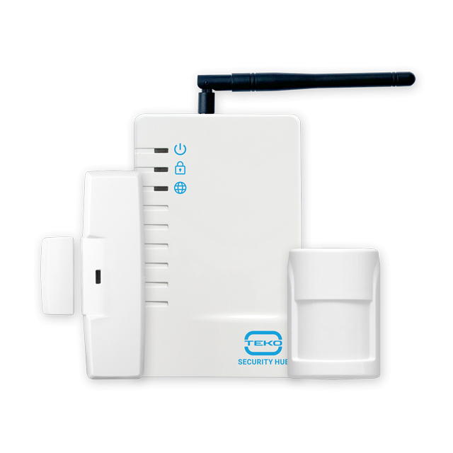 - комплект состоит из абонентского контроллера Security Hub (SH) с аккумуляторной батареей, сетевого адаптера с кабелем USB, радиодатчиков движения и открытия двери/окна с элементами питания. Функционал комплекта расширяется беспроводными датчиками разбития стекла, протечки воды, задымления и др.;
