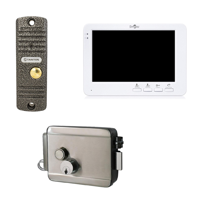 Комплект из вызывной панели, видеодомофона и электромеханического замка предназначен для дистанционного общения с гостем ил посетителем, управления открытием дверей или калиток.