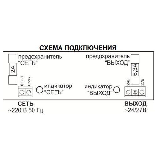 Сетевой (не бесперебойный) источник питания. Выходное переменное напряжение 24 В или 27 В, 50 Гц. Максимальный ток выхода — 5 А. Выход 27 В используется для компенсации падения напряжения на длинной линии