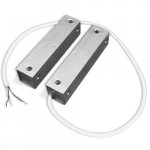 Магнитоконтактный для металлических поверхностей; контакты размыкаются при тревоге, 30 мм (контакты замкнуты), 70 мм (контакты разомкнуты); U-коммут.72 В, I-коммут.500 мА, P-коммут.10 Вт; IP68, t-раб.-50…+50°С, 90х20х20 мм (геркон и магнит). Кабель КСПВГ 2х0.2 1000 мм (металлорукав). Алюминиевый корпус.
