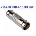 Соединитель коаксиального кабеля BNC-розетка / BNC-розетка. Упаковка 100шт. Диапазон частот 0-1ГГц. Материал-латунь. Покрытие-никель(корпус), серебро(центральный контакт).