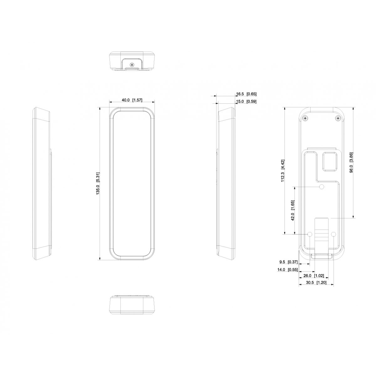 135 мм × 40 мм × 15 мм (5.31" × 1.57" × 0.59") (Д × Ш× В) |