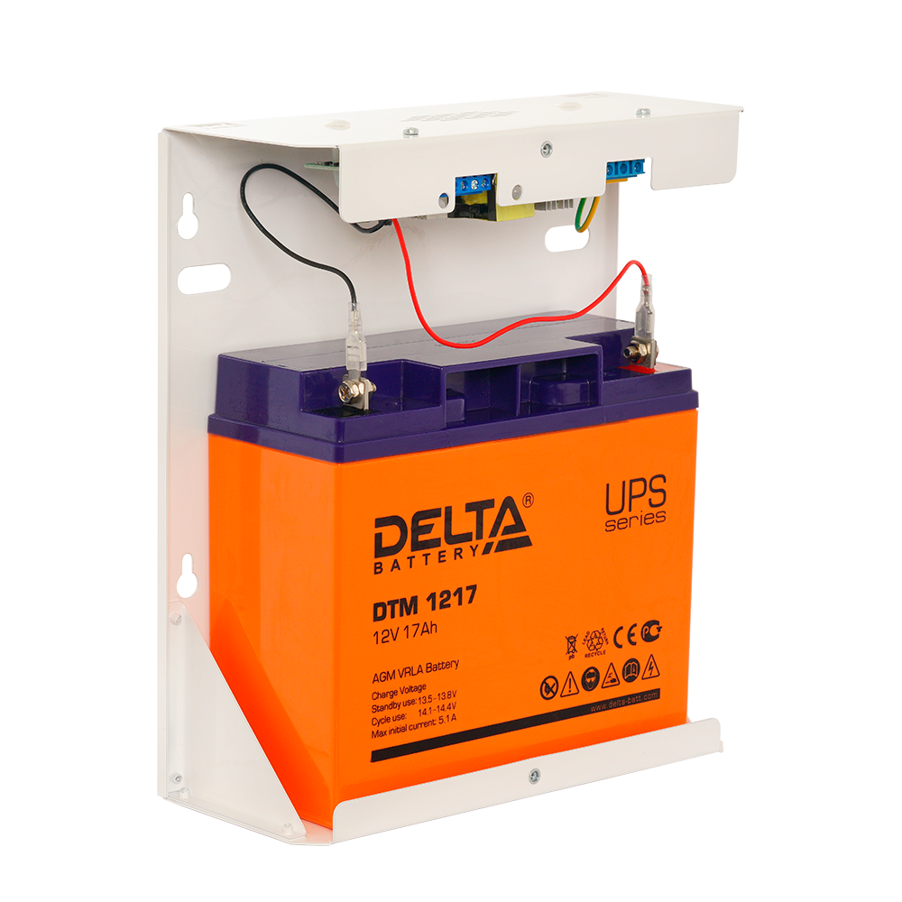 блок бесперебойного питания, металлический корпус, входное напряжение 100-260 В 50 Гц, выходное напряжение 13.6 В, номинальный ток нагрузки 5 А защита от короткого замыкания и глубокого разряда аккумулятора,IP31, -15…+50 °C, 250х225х86 мм, масса 1.2 кг, предназначен для АКБ 12 В 17 Ач