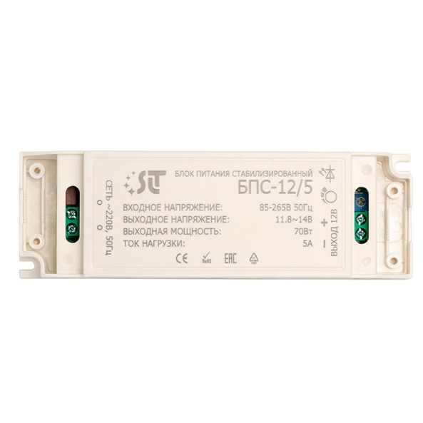 Блок питания стабилизированный, предназначен для питания радиоэлектронных устройств широкого применения напряжением 12 В постоянного тока от сети переменного тока напряжением 220 В. Напряжение выходное номинальное 11.8-14.0В. 5А, Диапазон напряжения 85-265В, 50Гц. Потребляемая мощность по сети 220В-не более 88Вт. Выходная мощность не более 70Вт. IP 21. Диапазон рабочих температур -15...+50, Габаритные размеры 140х45х28мм. Масса 0.14кг. Защита от перегрузок по току и короткого замыкания. Регулировка выходного напряжения. Индикатор работы.