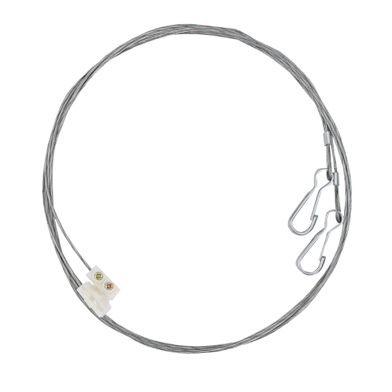 ККТ-2 Для крепления световых табло к высоким потолкам. Комплектность: 2 троса (1м), 2 зажима, 2 карабина, 2 клеммных колодки, зип лок.
