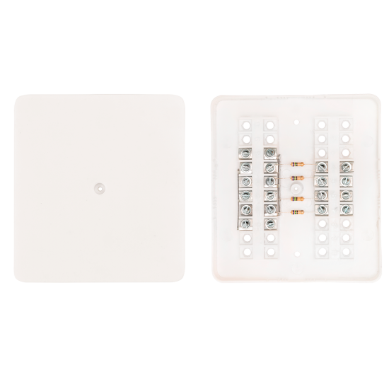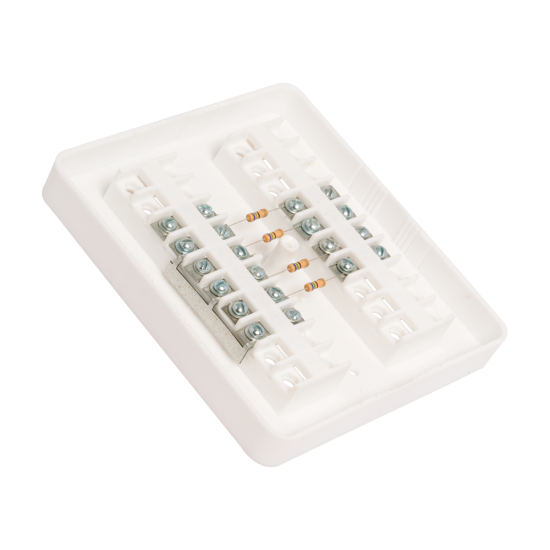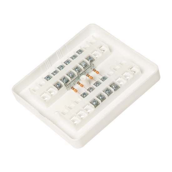 Коробка распределительная абонентская с 4-мя резисторами (75 Ом) на 2 абонента, 125х113х27мм.