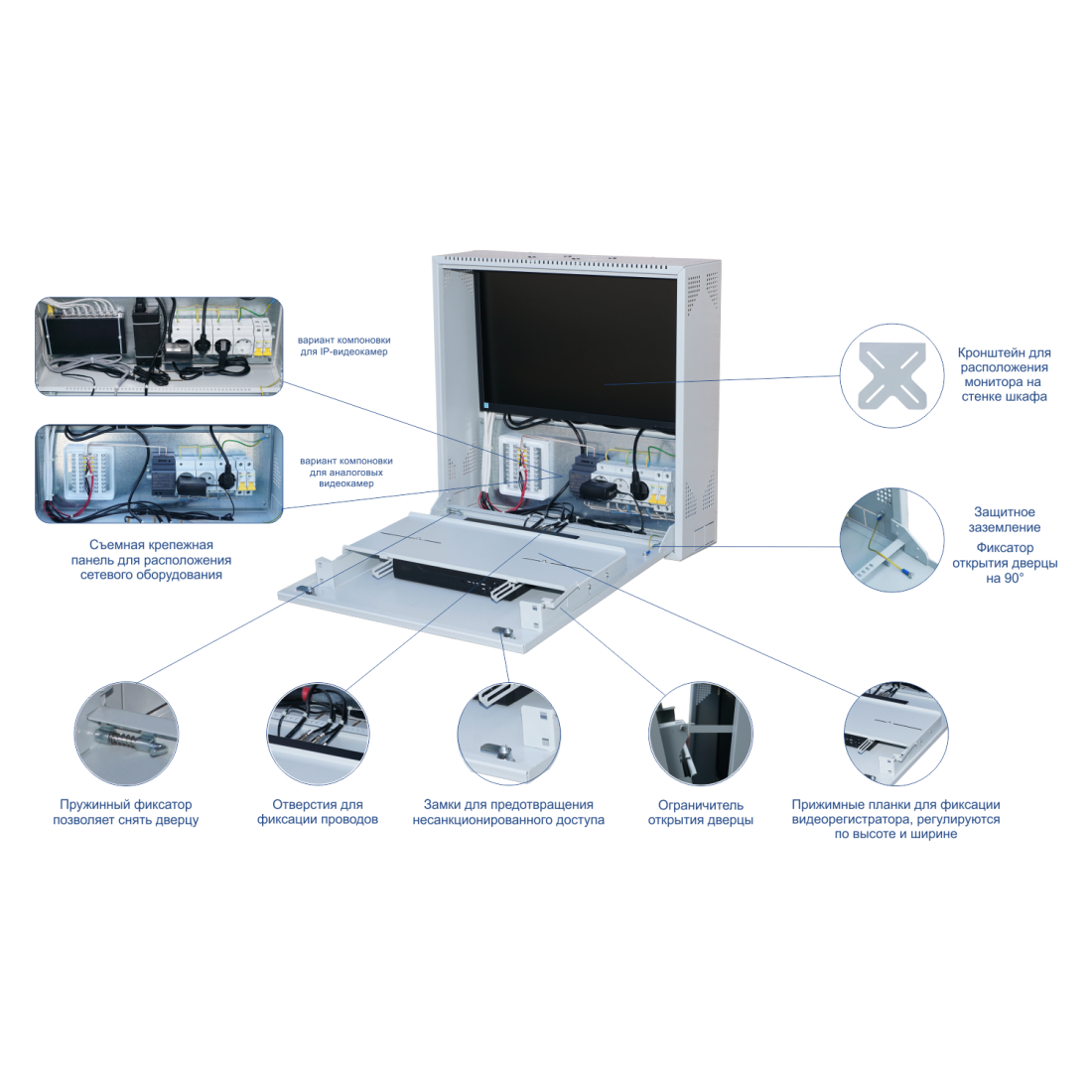 Шкаф металлический для видеонаблюдения, 10,5 кг, 560х540х150мм, светло-серый, металл 1 мм