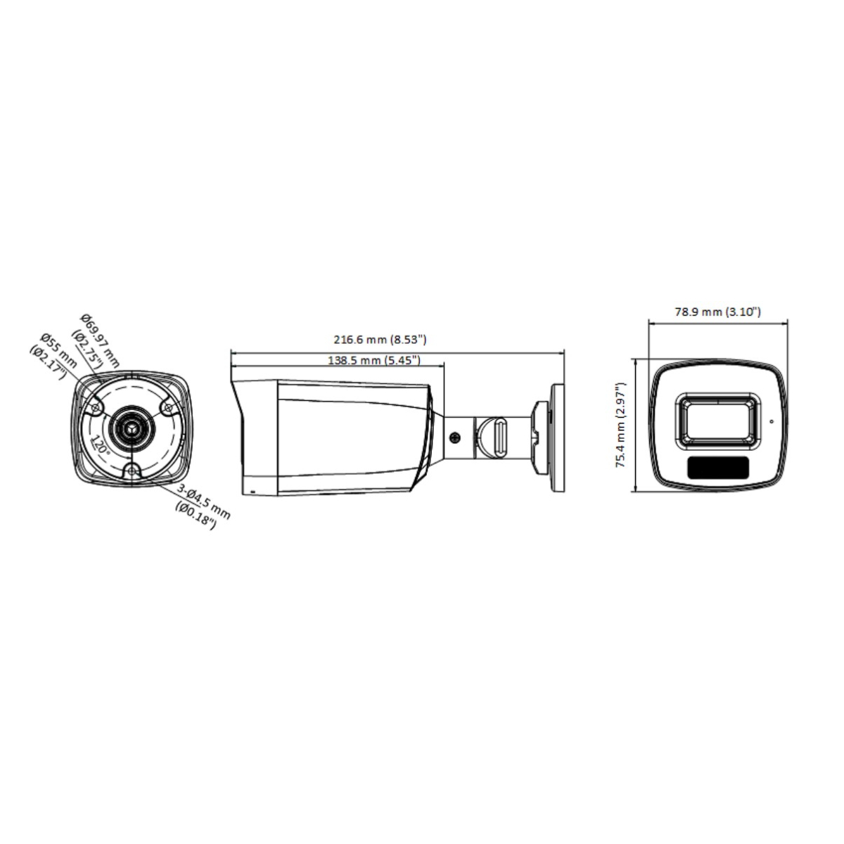 216.6 х 78.9 х 75.4 мм (8.53 х 3.10 х 2.97") |