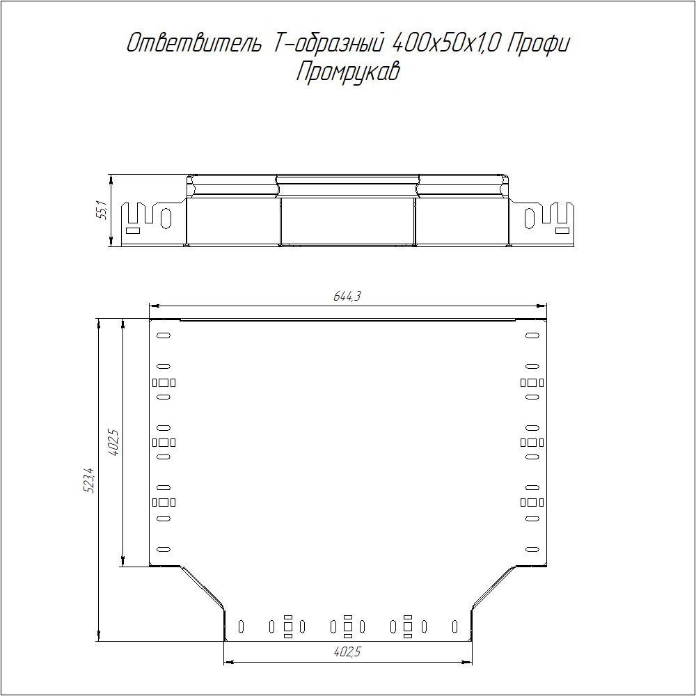 Ответвитель Т-образный Профи 400х50 (1,0 мм) (PR16.14295)