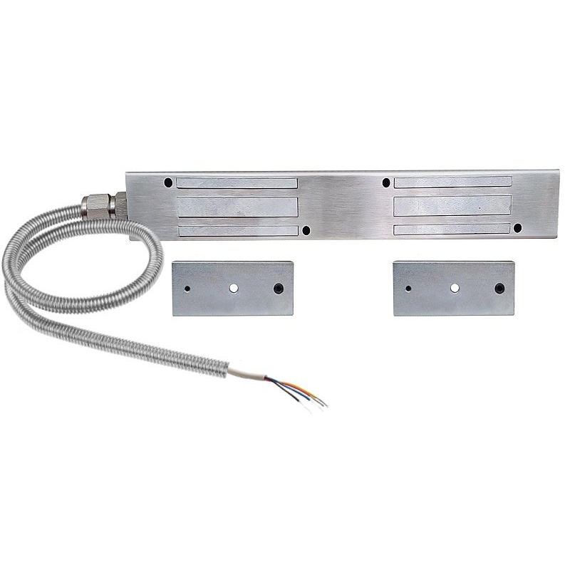 Замок электромагнитный. Для больших и двустворчатых дверей. Увеличенная площадь отрыва, 2 якоря. Сила удержания 250 кг, 24 В, 120 мА, в, IP67, -60...+60 С, вывод - специальный кабель с двойной плотной изоляцией в металлорукаве 2м (другая длина по заказу), комплект поставки: корпус замка, планка, угольник, монтажная пластина, 2 якоря, пластины крепления якоря, комплект крепления якоря. Предназначен для применения в системах безопасности объектов, в системах пожарной и охранно-пожарной сигнализаций в качестве управляемого запирающего устройства.
