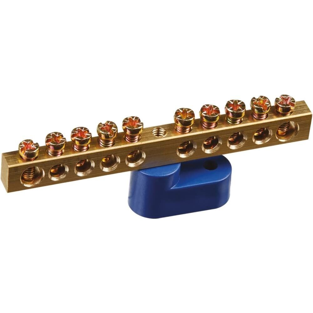 Нулевые шины предназначены для электрического и механического соединения нулевых, защитных и фазных проводников. Применяются в щитовом оборудовании для присоединения нулевых рабочих (N) и нулевых защитных проводов (РЕ), используются в электротехнических шкафах, щитах, сборках, в технологическом оборудовании в качестве комплектующих. Изготовлены из электротехнической латуни. Шина устанавливается на изоляторе из полиамида.