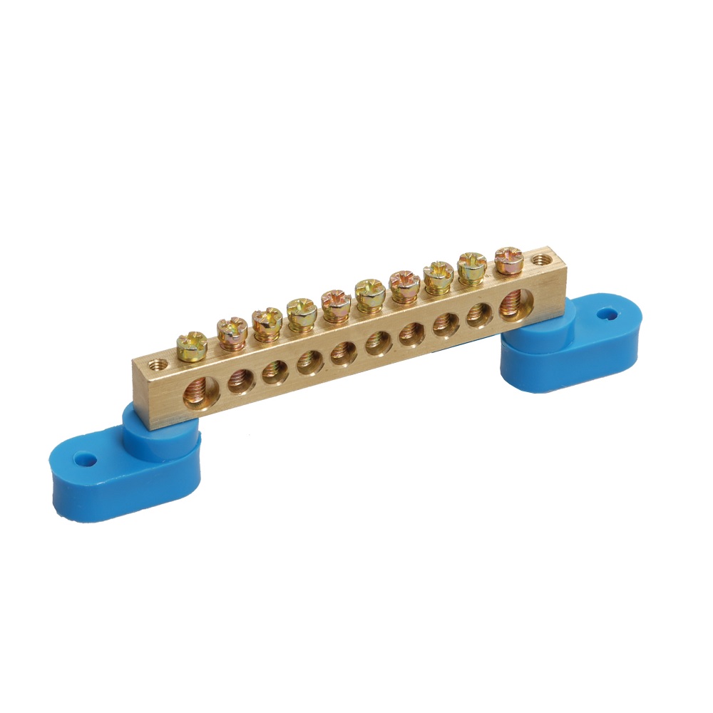 Нулевые шины предназначены для электрического и механического соединения нулевых, защитных и фазных проводников. Применяются в щитовом оборудовании для присоединения нулевых рабочих (N) и нулевых защитных проводов (РЕ), используются в электротехнических шкафах, щитах, сборках, в технологическом оборудовании в качестве комплектующих. Изготовлены из электротехнической латуни. Шина устанавливается на изоляторах из полиамида.