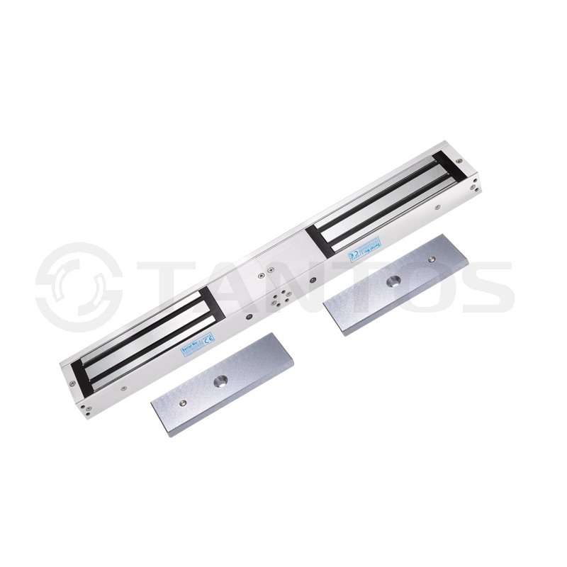 Замок электромагнитный сдвоенный для установки на двустворчатые двери, с силой удержания на отрыв каждой створки до 280 кг. Корпус замка из анодированного алюминия. Габаритные размеры 500х55,2х28,8мм. Питание 12-14В, потребление 2х550мА.