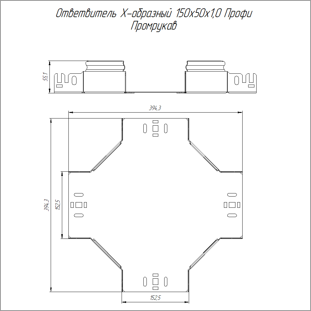 Ответвитель Х-образный Профи 150х50 (1,0 мм) Промрукав (PR16.14459)