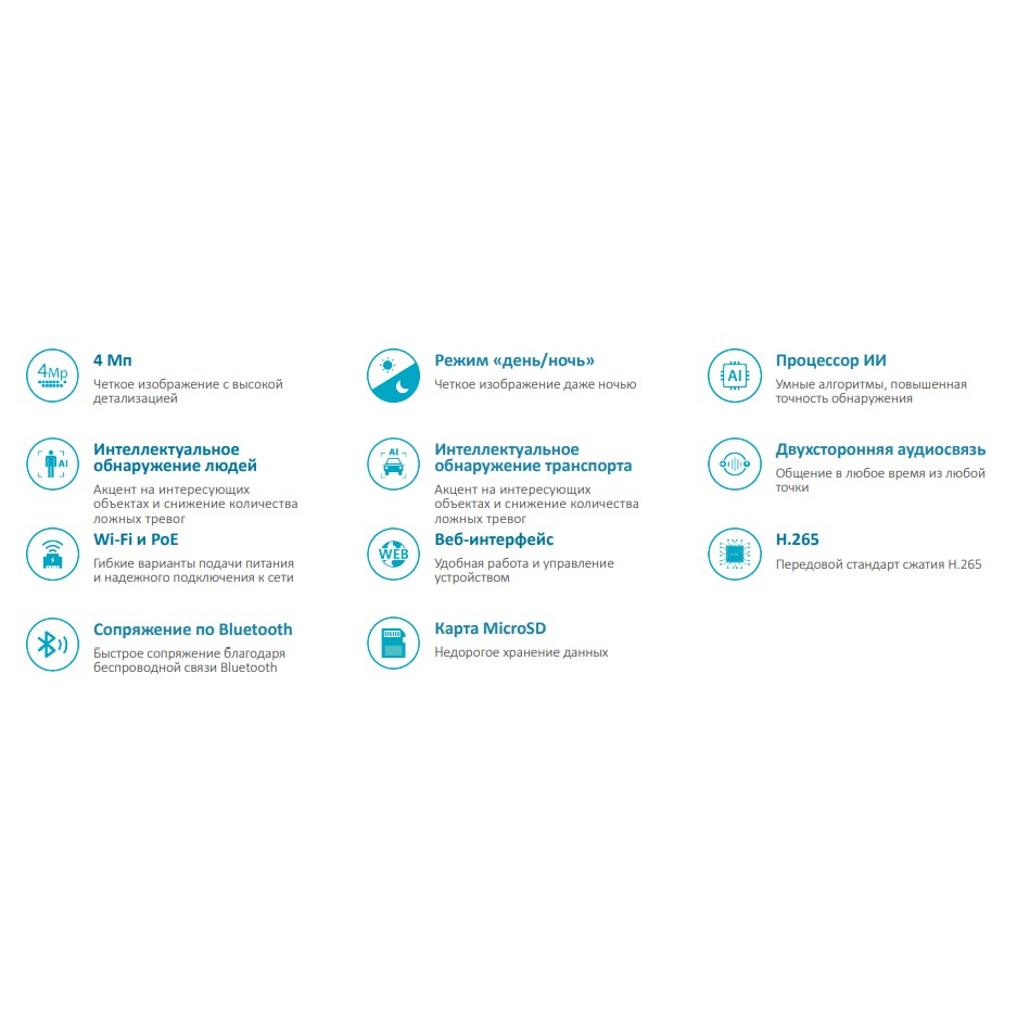 - Встроенная видеоаналитика: Пересечение линии, Пересечение области и вторжение, Человек/ТС