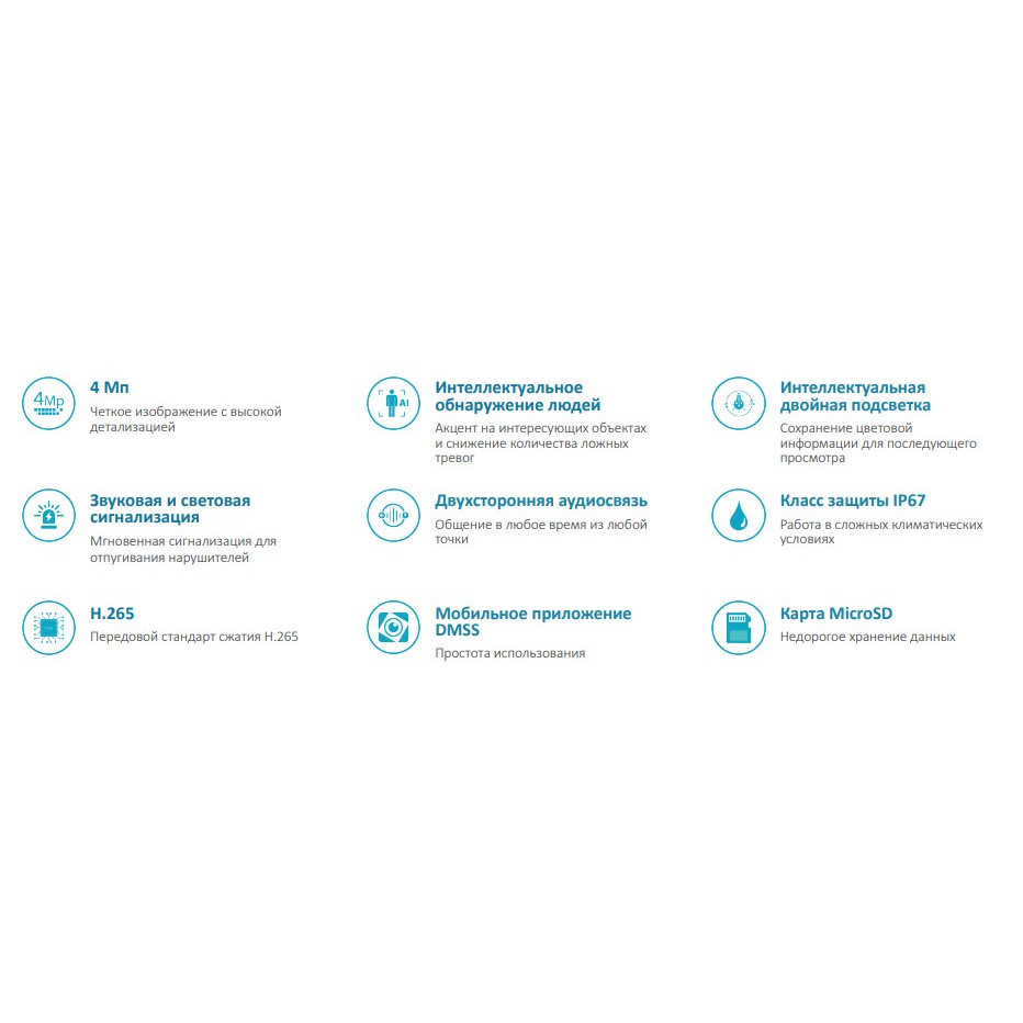 - Встроенная видеоаналитика: Детектор звуков, Пересечение линии, Пересечение области и вторжение, Человек/ТС