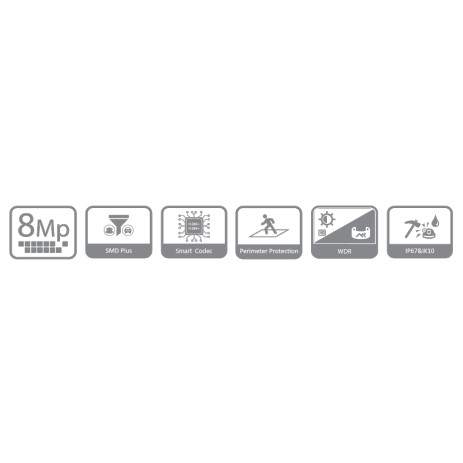 Уличная купольная IP-видеокамера 8Мп 1/2.7” CMOS, ICR, WDR(120дБ), чувствительность 0.008 лк F1.5 сжатие: H.265+/H.265/H.264+/H.264/H.264B/H.264H/MJPEG,2 потока. Разрешение и скорость трансляции видео 8Мп(1~20к/с),моторизованный объектив с фокусным расстоянием 2.7мм ~13.5мм, Видеоаналитика: SMD Plus (интеллектуальный детектор движения), пересечение линии, контроль зоны. Дальность ИК-подсветки 40м, поддержка карты памяти Micro SD, аудиовх/вых: встроенный микрофон, 1/1, тревожные вх./вых.: 1/1. IP67, IK10. DC12V/PoE Материал корпуса: металл