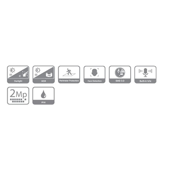 - Встроенная видеоаналитика: Детектор лиц, Детектор звуков, Пересечение линии, Пересечение области и вторжение, Человек/ТС