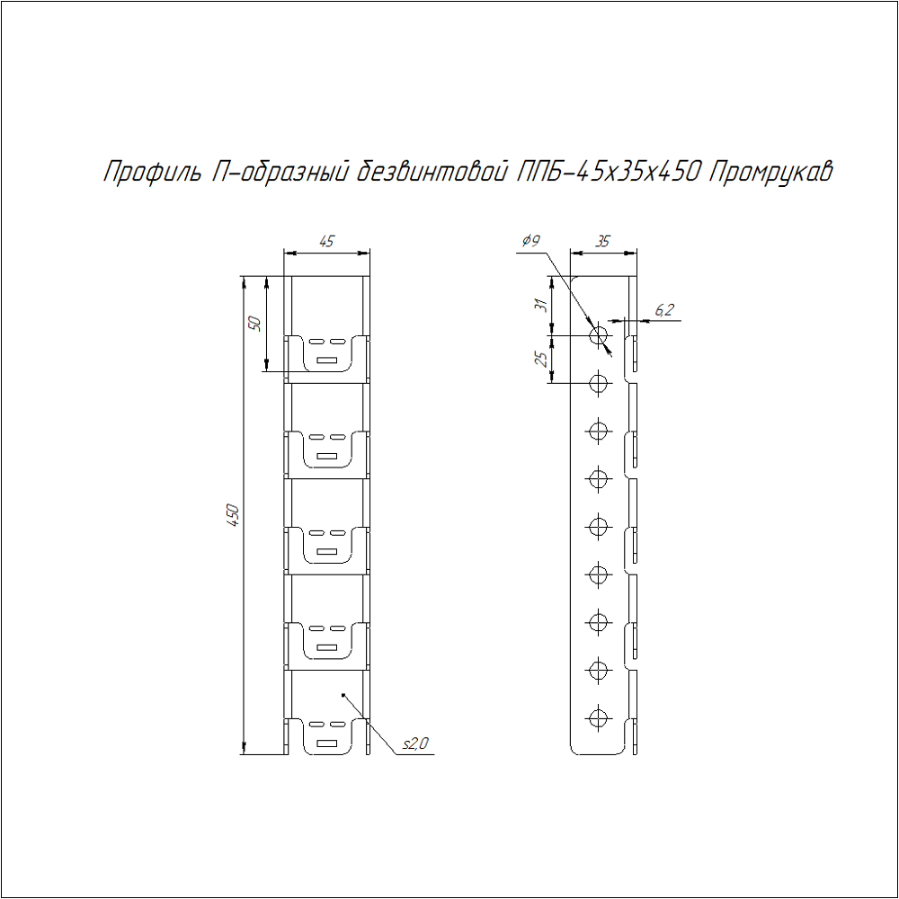 Профиль П-образный безвинтовой ППБ-45х35х450 (PR16.20280)