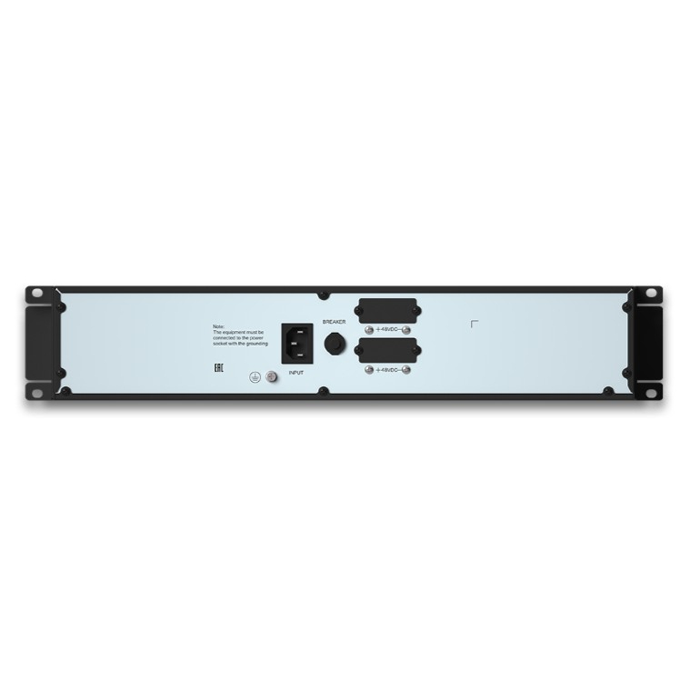 - Металлический корпус 19” высотой 2U. Обеспечивает эффективный теплоотвод от АКБ. Позволяет устанавливать изделие в горизонтальном положении в телекоммуникационные шкафы или вертикально на пол. В комплекте кронштейны и оборудование для крепежа.