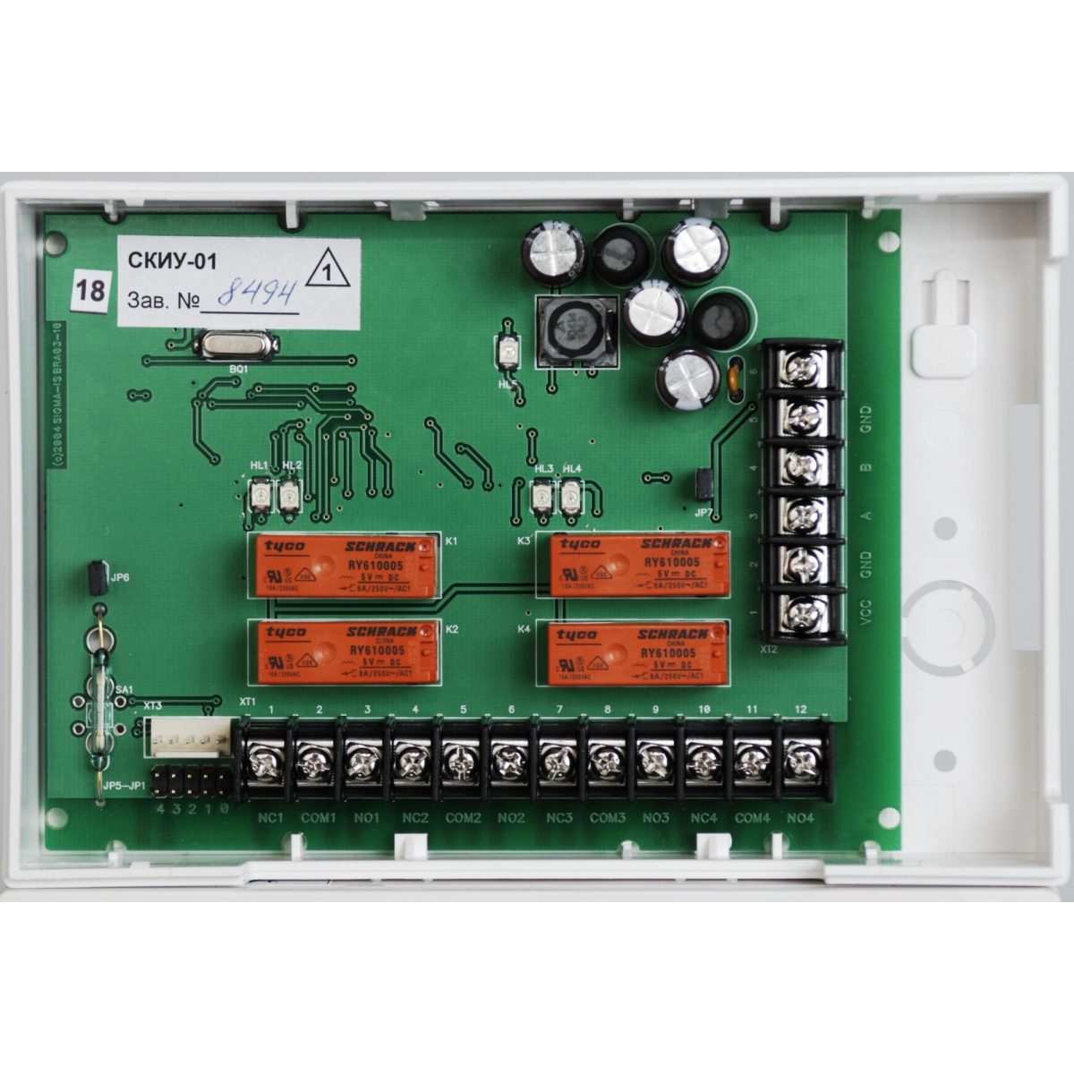 сетевой контроллер исполнительных устройств, 4 реле переключающего типа, max коммутируемое напряжение 125 В DC, 250 В AC, max ток 2 А, 10,5-28 В DC, ток потребления до 300 мА, -50…+50 °C, IP65, пластмассовый корпус, 193х143х55 мм, масса 0,3 кг