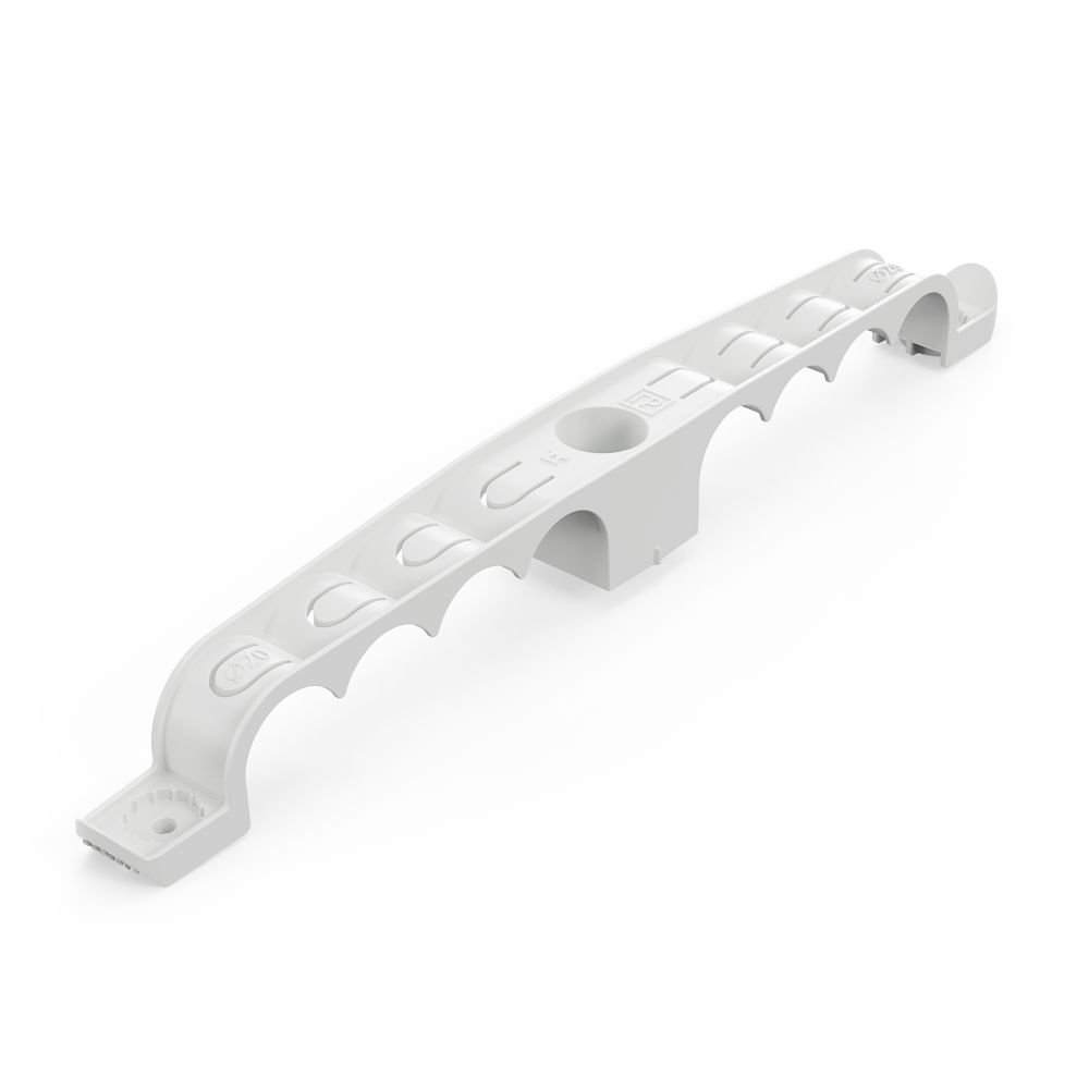Держатель труб для прямого монтажа двусторонний на 8 мест d20 Промрукав - это специализированный крепеж, предназначенный для крепления гофрированных и гладких пластиковых труб диаметром 20 мм. Держатель труб разработан для прямого монтажа, что позволяет осуществлять крепление монтажными пистолетами по бетонным поверхностям, но возможен монтаж и классическим способом, используя дюбели и саморезы. С помощью двустороннего держателя труб можно одновременно смонтировать и закрепить до 8 труб. Данную продукцию можно использовать при прокладке линии внутри помещений или под навесом. При необходимости допускается фиксировать края держателя, в том числе монтажным пистолетом, для обеспечения максимально возможной надежности фиксации трубы. При необходимости монтажа большого количества труб с помощью держателя труб для прямого монтажа будет удобна упаковка держателей россыпью в гофроящике по 100 штук.