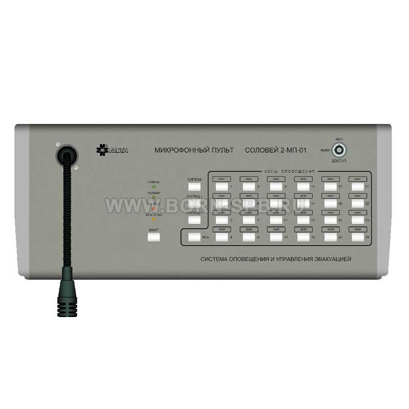 Микрофонный пульт «СОЛОВЕЙ-МП» предназначен для работы в составе прибора пожарного управления оповещением «СОЛОВЕЙ 2» и обеспечивает возможность речевого оповещения и подачи сигнала оповещения «СИРЕНА».