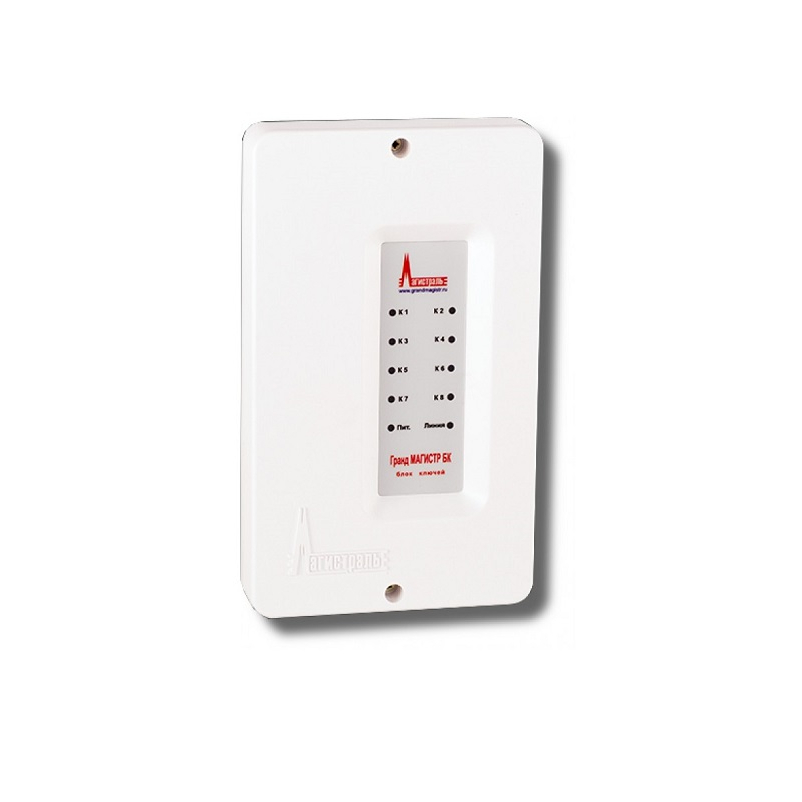 Блок ключей "Гранд Магистр" версия 3, 8 выходов типа "открытый коллектор", максимальный ток ключа 1 А, напряжение питания 11…14 В или 21…24 В, ток потребления 0,03 А, диапазон рабочих температур -30…+55°С, габаритные размеры 200х118х43 мм