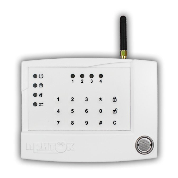 Прибор приемо-контрольный охранно-пожарный, каналы связи GPRS и SMS (2 SIM карты), 4 ШС, встроенный считыватель ТМ (клеммы для подключения внешнего считывателя), встроенная клавиатура, U-пит. 10.2... 14.5 В, I-потр. 250 мА, 4 выхода "ОК" ( 12 В/50 мА), t-раб. -10…+45°C, габ.размеры 148х118х38 мм.
