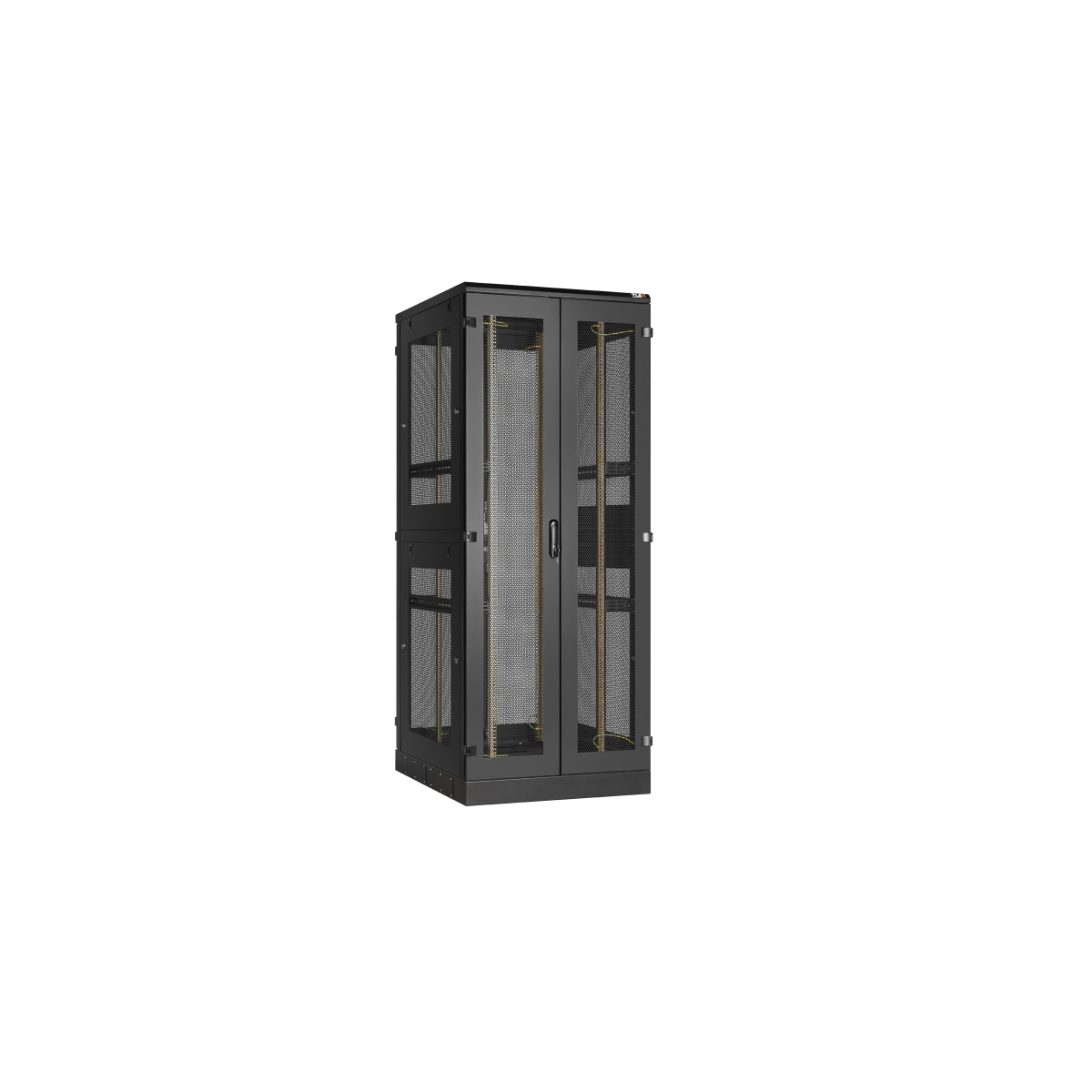 Напольный шкаф 19, 42U, двухстворчатые перфорированные двери, двухуровневые стенки Ш600хВ2060хГ1200мм, в разобранном виде, черный