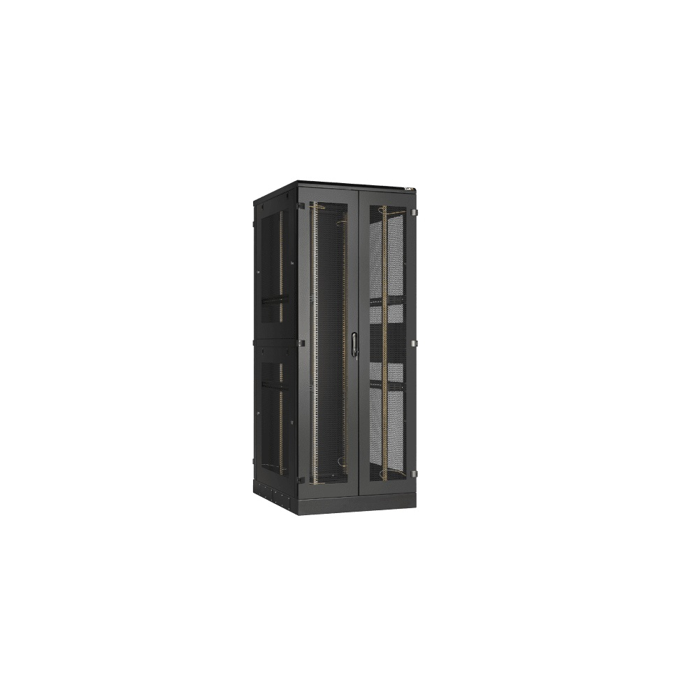 Напольный шкаф 19, 42U, стеклянная дверь, перфорированные двухстворчатые двери, перфорированные стенки, Ш800хВ2060хГ1000мм, в разобранном виде, черный