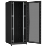 Напольный шкаф 19, 47U, стеклянная дверь, двухуровневые боковые металлические стенки, Ш800хВ2280хГ1200мм, в разобранном виде, черный