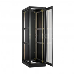 Напольный шкаф серии Lite II 19, 42U, стеклянная дверь, цельнометаллические двухуровневые стенки и задняя дверь, Ш600хВ2042хГ1000мм, в разобранном виде, черный