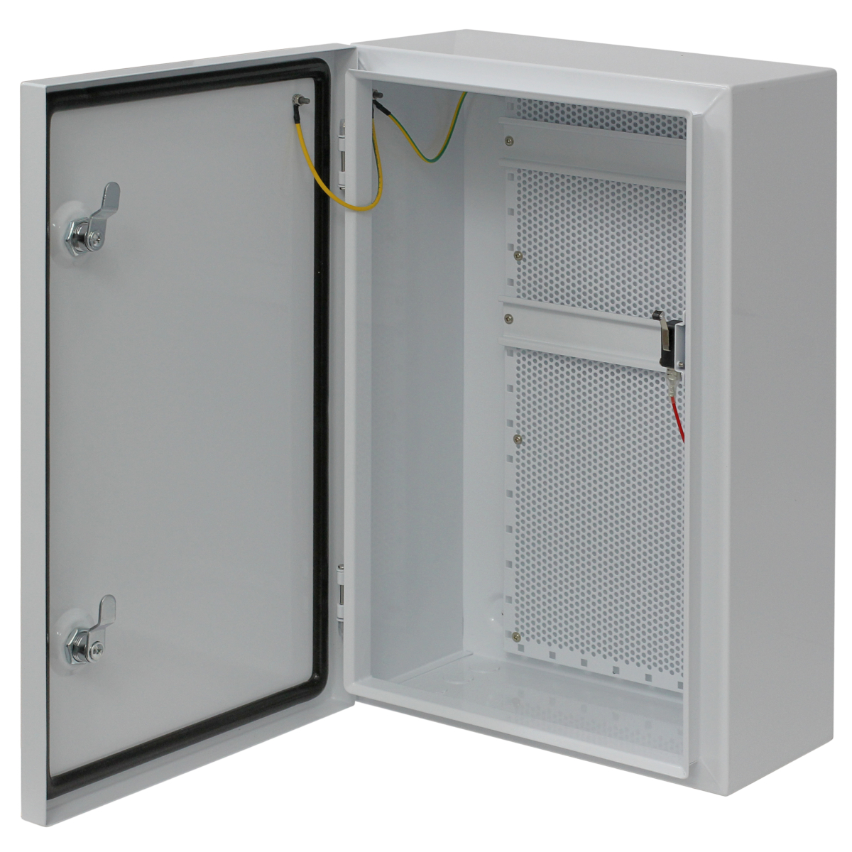Металлический бокс, 2 DIN рейки, монтажная решетка, IP66. Габариты: 450х288х160 мм