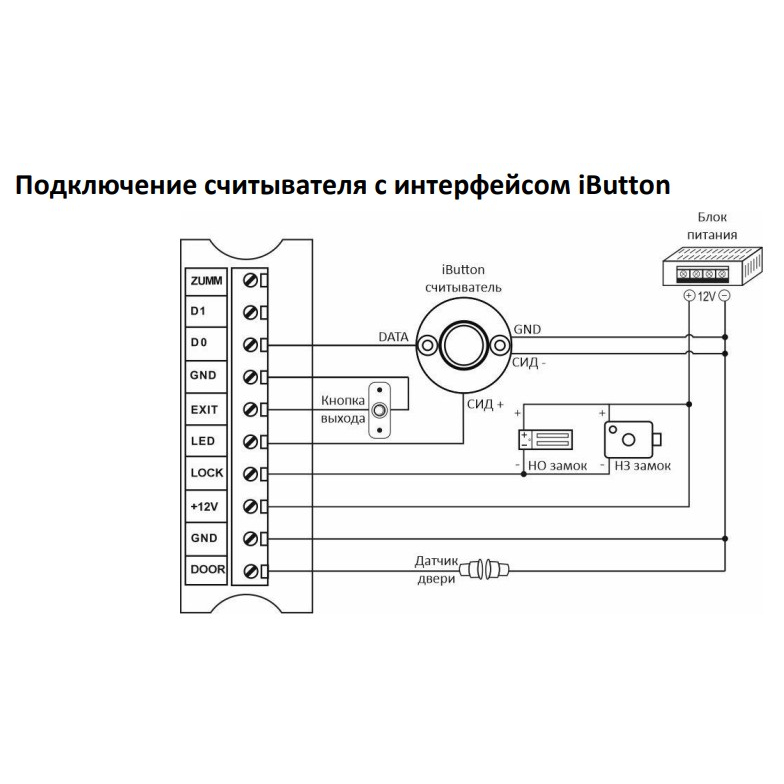1 вход для кнопки выхода, 1 вход для датчика положения двери |