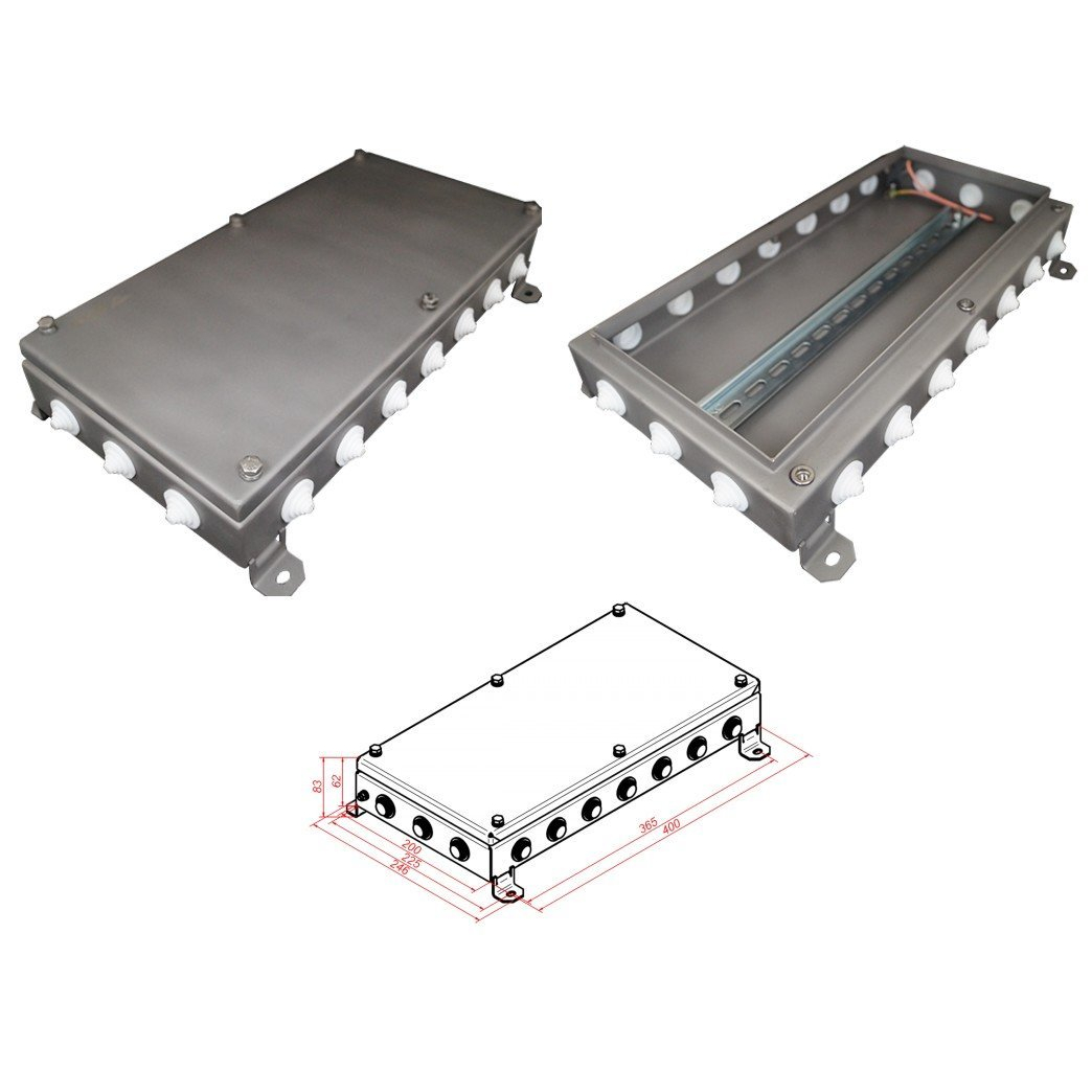 Коробка монтажная с DIN-рейкой -типа шириной 35 мм и высотой 7.5 мм, 20 вводов, IP55, t-раб.-40…+60°C, габ.размеры 200х400х60 мм, вес 1.86кг, нержавеющая сталь
