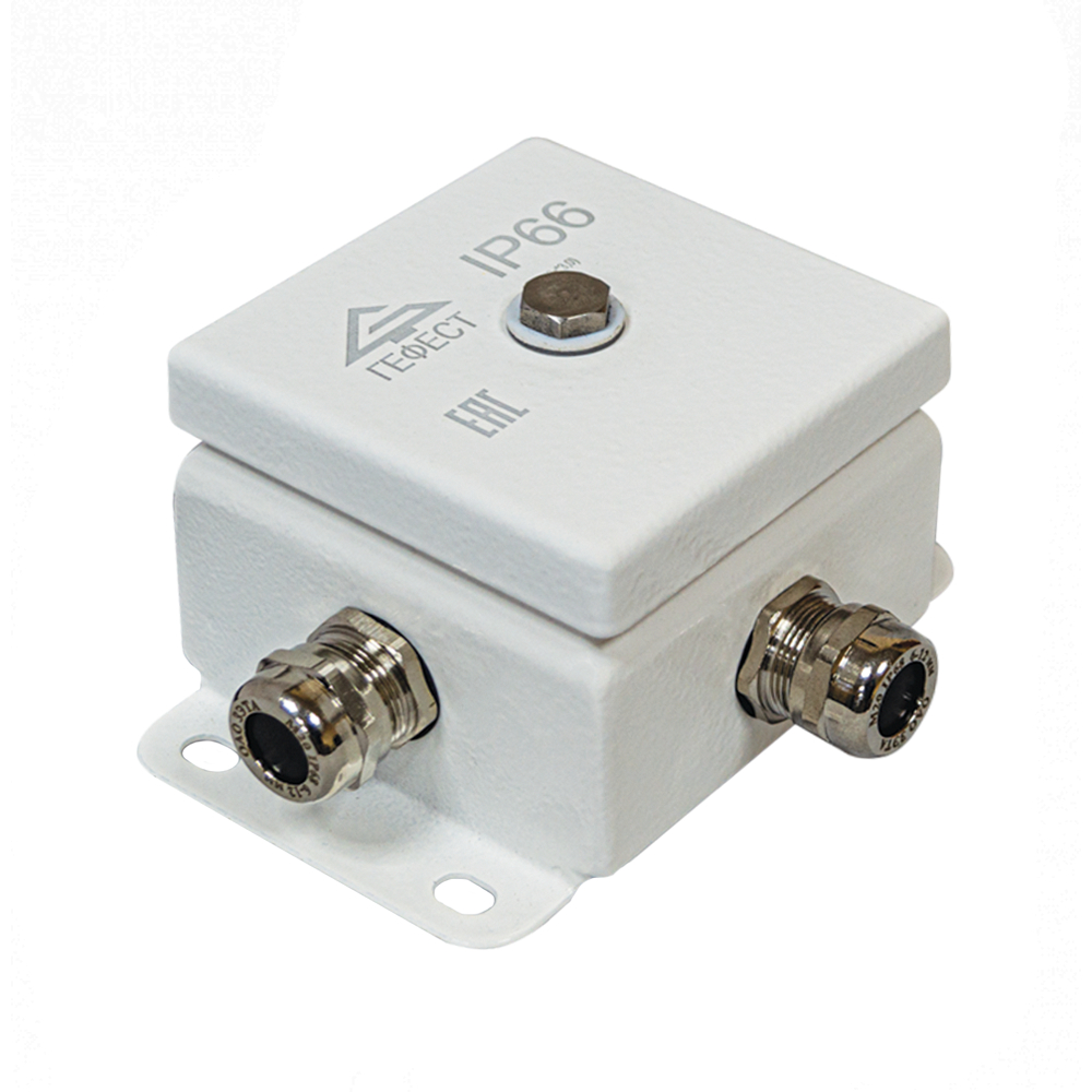 Коробка монтажная, 4 ввода из никелированной латуни под кабель 4…18 мм, IP66, t-раб.-40…+100°С, 86х86х62 мм. Цвет белый. Корпус из листовой конструкционной стали Ст3 толщиной 1.2 мм.