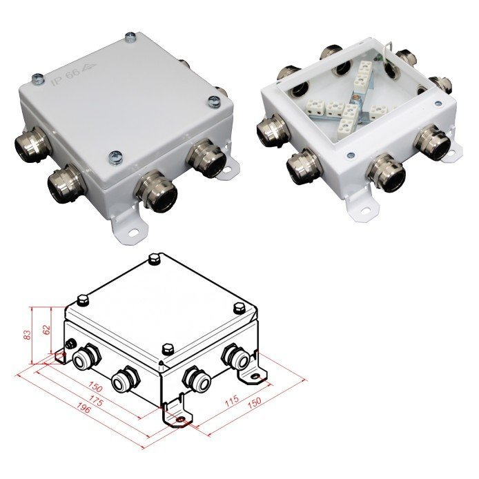 Коробка монтаж.огнестойкая, керам.колодка 16х3мм , 8 вводов, IP66, tраб.-40…+60°С, габ.размеры 150х150х60 мм, оцинкованная сталь с полимерной окраской