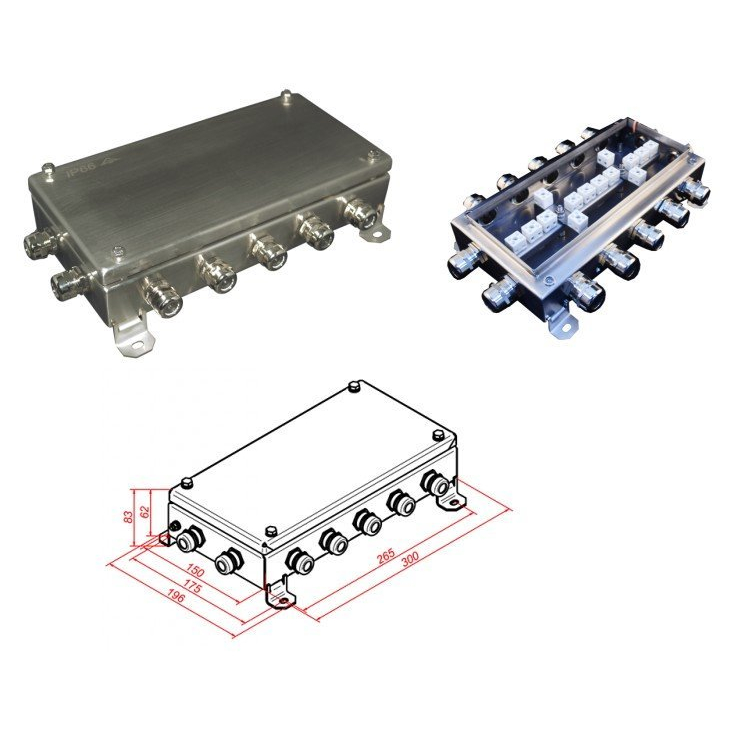 Коробка монтаж.огнестойкая, керам.колодка 28х3мм , 12 вводов, IP66, t-раб.-40…+60°C, габ.размеры 150х300х60 мм, нержавеющая сталь