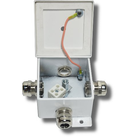 Корпус коробки целиком изготовлен из стали 2,5-3 мм. Имеет двойную защиту от коррозии ( гальваническое покрытие и покраска). Крышка прижимается к корпусу через силиконовую прокладку. Винт крепления крышки снабжен уплотняющей тарельчатой шайбой с фторопластовым покрытием. Внутри корпуса коробки установлены керамические клеммные колодки, обеспечивающие соединение "под винт", и клемма заземления. В боковых стенках устанавливаются металлические кабельные вводы. Крепление коробки к элементам конструкций рекомендуется осуществлять на приварные пластины с применением гаек и винтов или с помощью саморезов и металлических дюбелей. Коробки предназначены для монтажа кабельных линий с огнестойким кабелем, но могут применяться с любыми другими кабелями в целях улучшения пожаробезопасности электропроводок. Гермоввод под кабель 6 - 12 мм2 (по требованию заказчика могут устанавливаться кабельные вводы иного диаметра при наличии технологических возможностей изготовления) Обеспечивают огнестойкое соединение кабелей с пределом FR 120 минут и более при температурном воздействии 750 – 800° С Сертификационными испытаниями подтверждено сохранение работоспособности до температуры 1020° С при напряжении 300 В (с учетом требований п.4.15 СП5 испытания проводились по ГОСТ Р 53316).Технические характеристики: