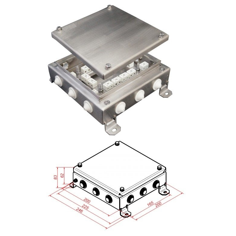 Коробка монтажная огнестойкая, 16 клеммных колодки по 2 контакта 3 мм, IP55, t-раб.-60…+100°C, 200х200х60 мм