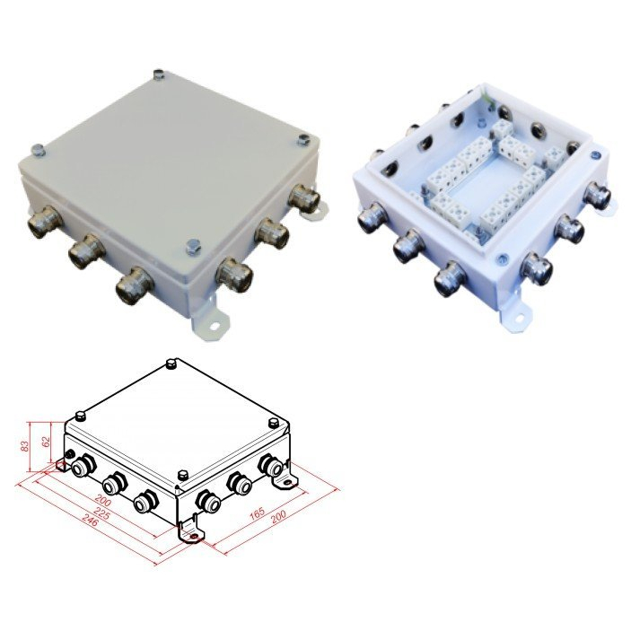 Коробка монтаж.огнестойкая, керам.колодка 32х3мм , 12 вводов, IP66, tраб.-40…+60°С, габ.размеры 200х200х60 мм, оцинкованная сталь с полимерной окраской