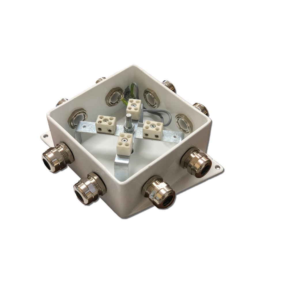 Коробка монтаж.огнестойкая, керам.колодка 8 х 3мм , IP66, 7 вводов, tраб.-60…+100°С, 120x120x55 мм