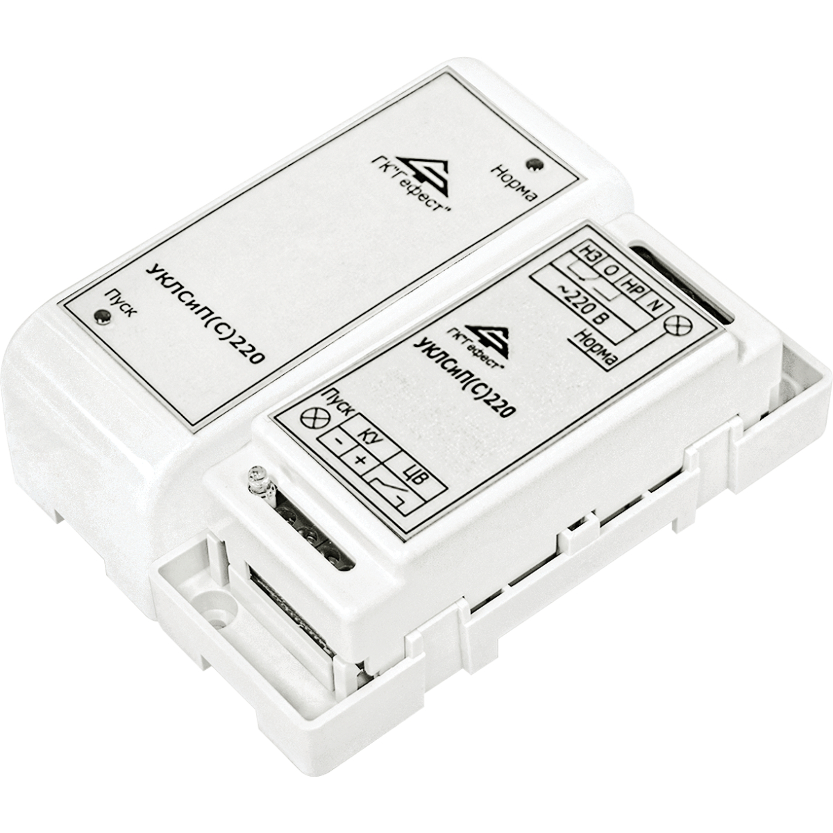 УКЛСиП(С)220 обеспечивает: - по команде «Пуск» включение / выключение исполнительного устройства, управление реверсивным исполнительными устройствами, получающими питание от сети 220 В, 50 Гц; - контроль исправности (на обрыв) цепей, соединяющих исполнительные устройства с УКЛСиП(С)220; - контроль наличия напряжения сети 220 В, 50 Гц; - формирование сигнала «Неисправность» размыканием контактов цепи вывода информации (выход ЦВ).Технические характеристики: