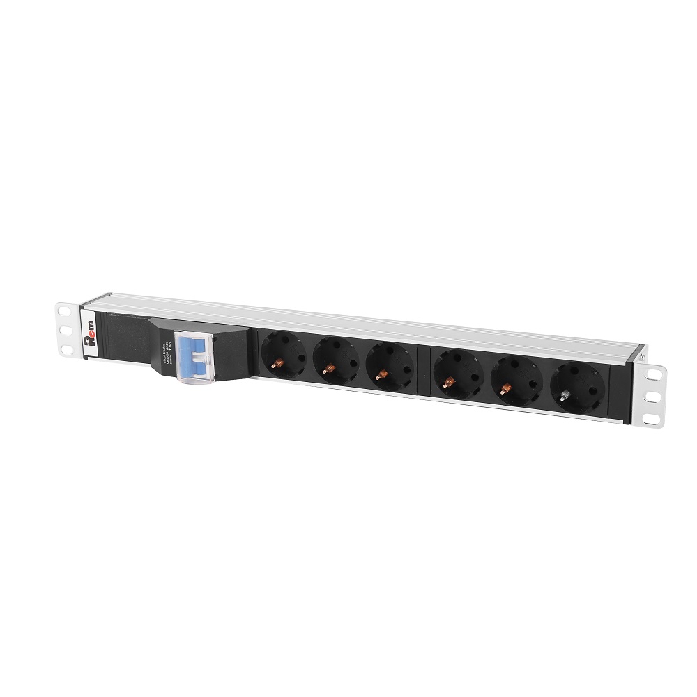 Блок розеток Rem-32 с авт., 6 Schuko, 32 А, алюм., 19, колодка.