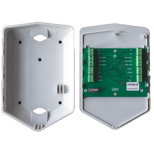 Расширитель зон для Nord GSM (до 5 шт.) и Nord WRL (1 шт.), 8 ШС, 6 ШС могут быть выходами ОК 30 В/250 мА, 2 ШС с поддержкой токопотребляющих пож.извещателей, U-пит. 9,5…14 В, I-потр. 20 мА, выход питания извещателей до 400 мА, t-раб. -30...+50°C, габ. размеры 151х100х28 мм, пласт. корпус. Совместим только с клавиатурами К14-LED с красной меткой NordBus