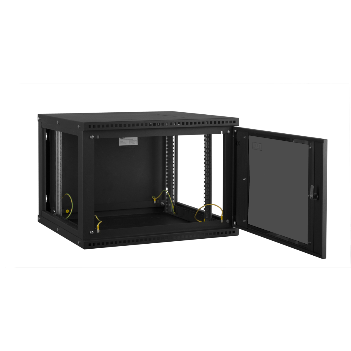 Настенный разборный шкаф 19, 12U, стеклянная дверь, Ш600хВ569хГ600мм, 2 пары монтажных направляющих, черный